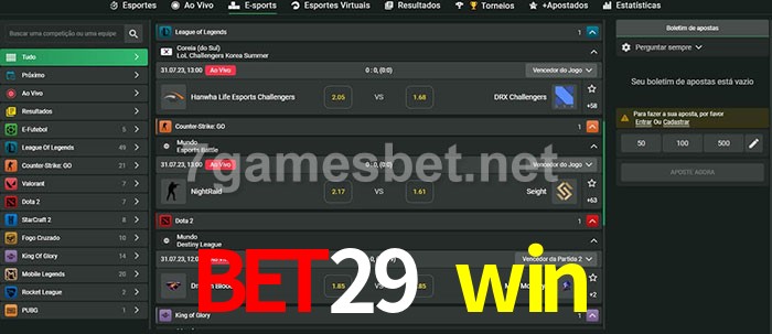 O bet29 win oferece uma grande seleção de opções de apostas em e-sports com probabilidades competitivas